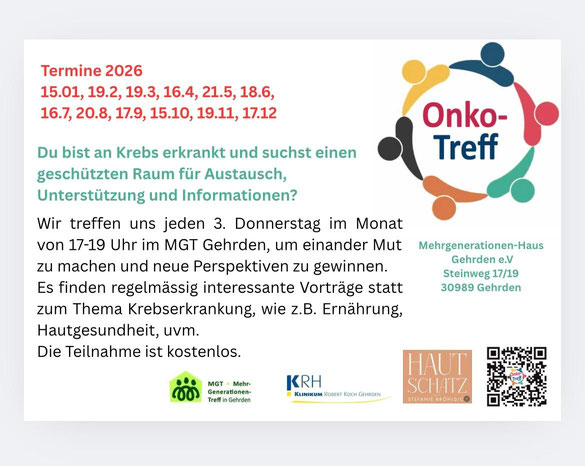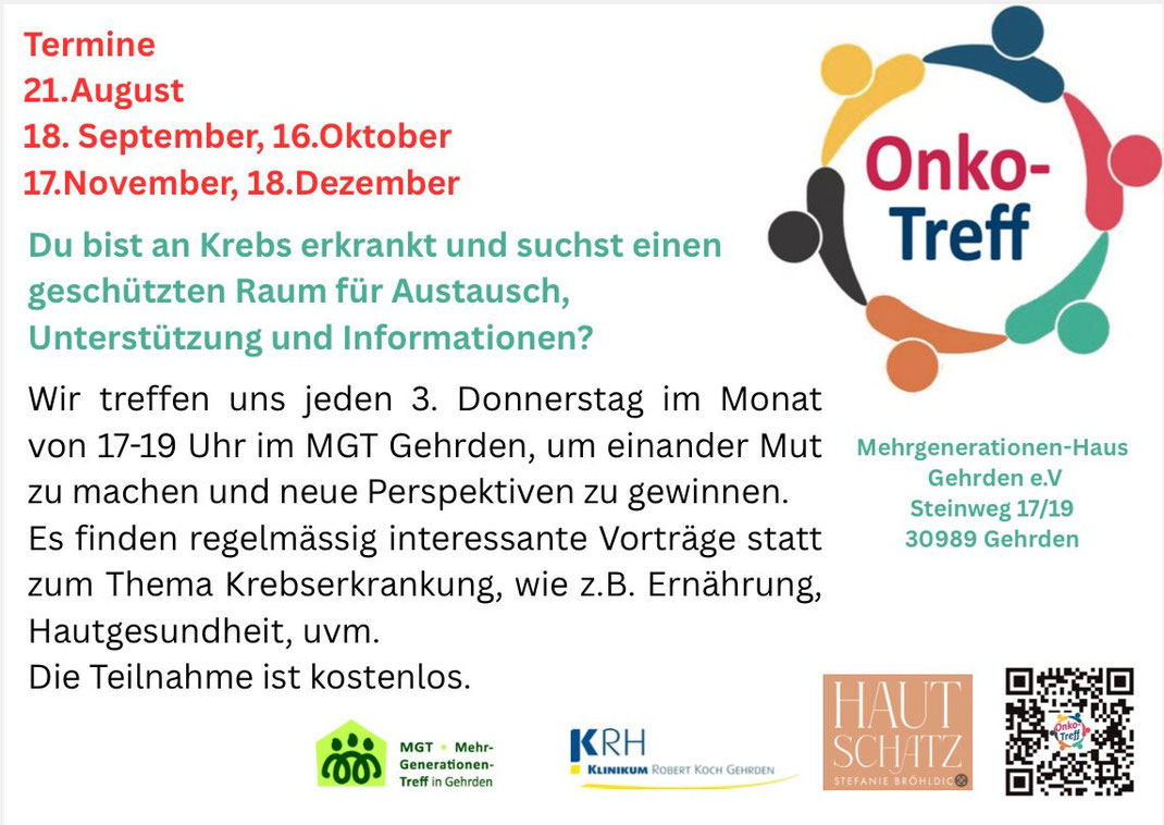 Der Onko-Treff richtet sich an alle Krebspatient:innen und deren Angehörige, unabhängig von der Art oder dem Stadium der Erkrankung. Die Treffen bieten Gelegenheit zu offenem Austausch, Information und gegenseitiger Stärkung. Ergänzend sind Fachvorträge, Gesprächsrunden und praxisnahe Workshops zu Themen wie Hautpflege während der Therapie, Ernährung, Bewegung oder seelische Gesundheit geplant.